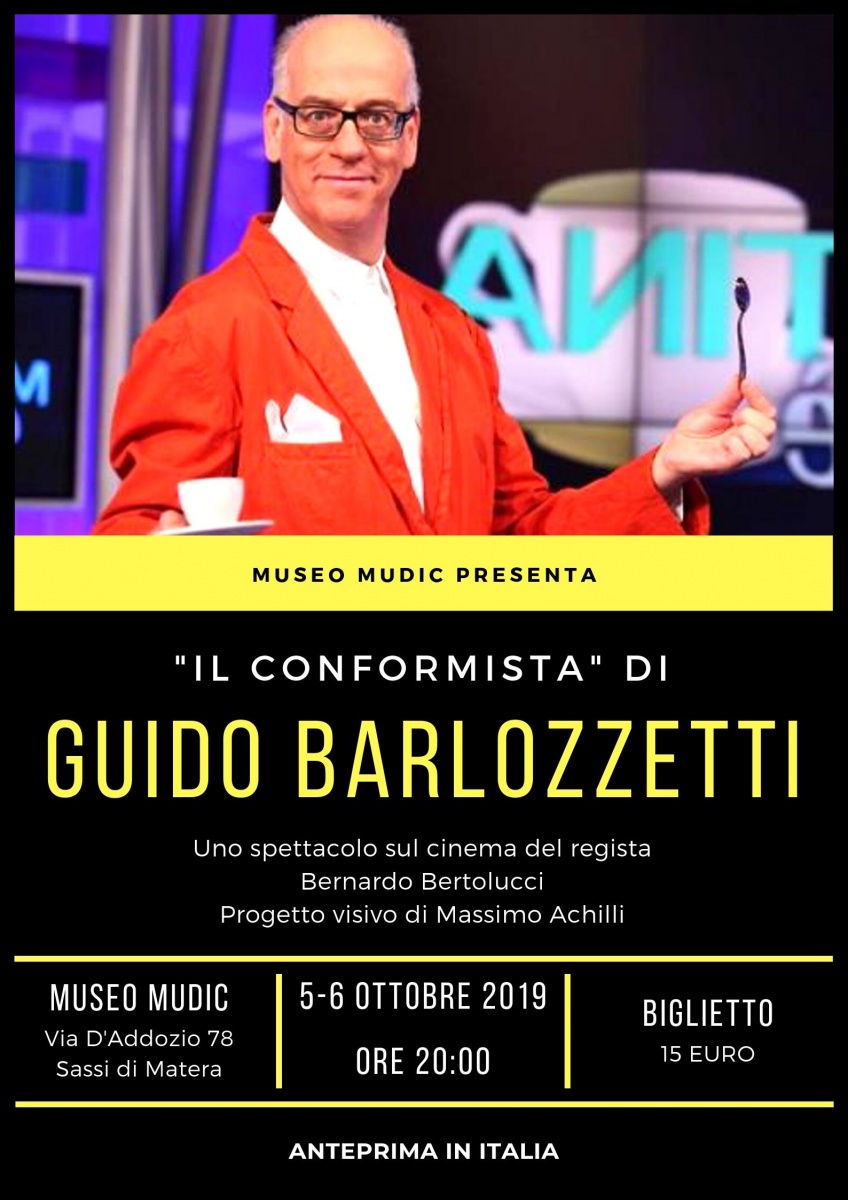 Il Museo MUDIC presenta, in anteprima in Italia, lo spettacolo "Il conformista" del giornalista di Rai 1 Guido Barlozzetti. Nei Sassi di Matera.