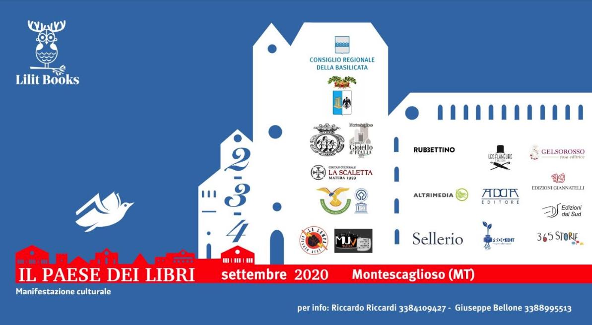La quinta edizione del “Paese dei Libri” che per quest’anno e’ sotto l’egida della Presidenza del Consiglio della Regione Basilicata, della Provincia di Matera, del Comune di Montescaglioso, del Circolo culturale “La Scaletta”, del “Parco archeologico storico naturale delle Chiese Rupestri del Materano”, dell’associazione culturale “MUV Matera” e della casa editrice “Lilit Books” avrà come tema “Il cammino dell’umanità al tempo di una pandemia impensata” e, pertanto, Montescaglioso vedrà per tre giorni consecutivi non solo il coinvolgimento di tutti i negozi con l’esposizione dei libri nelle loro vetrine ma anche incontri in contemporanea sui palchi allestiti in quattro piazze del centro storico, dalle 19 alle 21,30 - San Giovanni Battista, largo Mietitore, prato davanti all’Abbazia e la corte dellAbbazia - con la presenza di molti scrittori, studiosi e professionisti lucani, pugliesi e meridionali che avranno modo, attraverso un confronto con giornalisti, di raccontare il proprio bagaglio di conoscenze ed esperienze in un momento storico come questo. Ma non solo. Oltre ad una nutrita presenza di case editrici - ognuna con i propri banchi - Adda, Altrimedia, Giannatelli, dal Sud, Gelso Rosso, Lilit Books, Progedit, Rubbettino, Sellerio e “365” ci saranno mostre artistiche e fotografiche di grande prestigio.