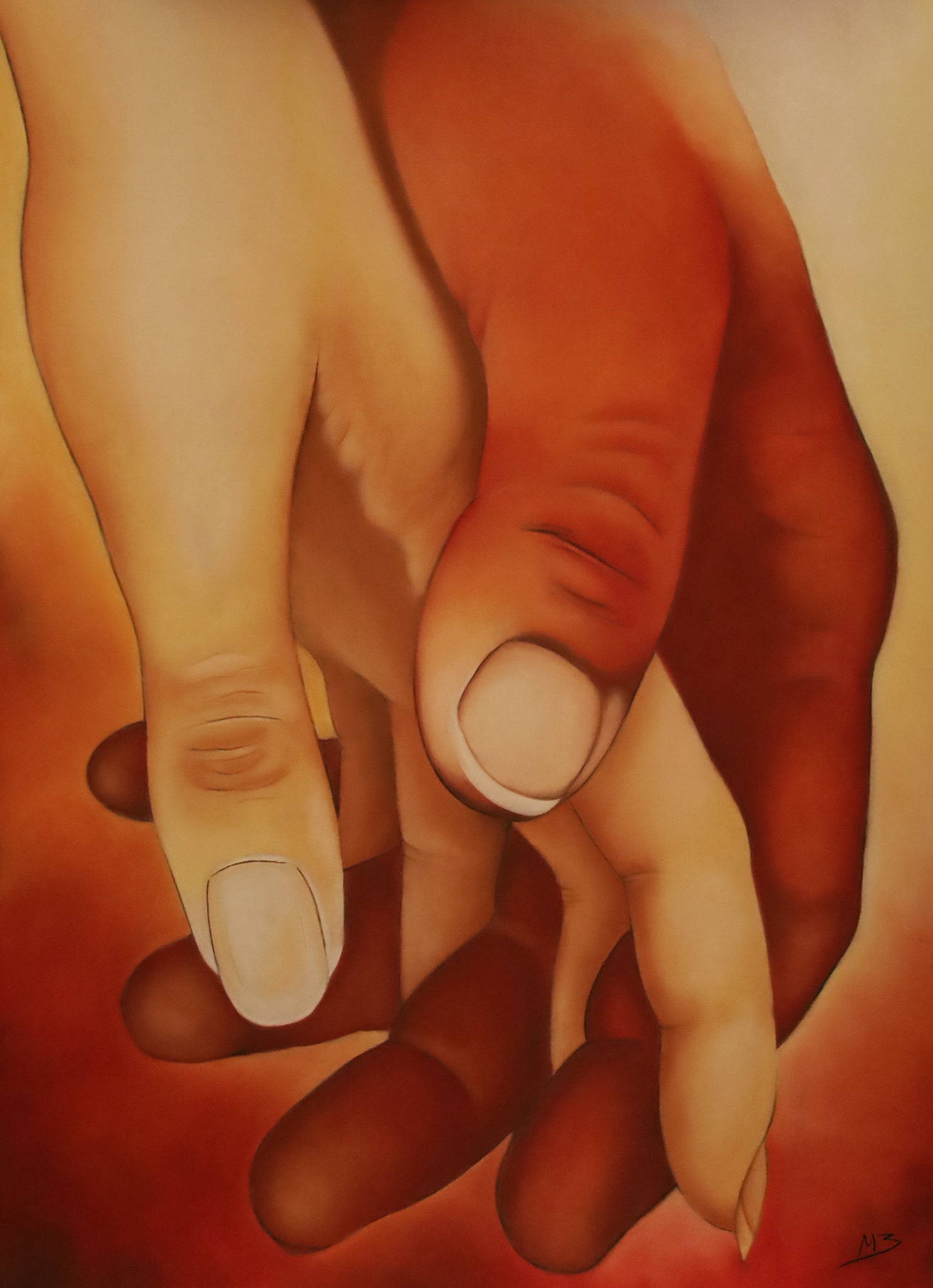 Il quadro che sarà oggetto di confronto con lo chef Luigi Annunziata e realizzato dall’artista Manuela Borrelli ha per titolo “Tenere Passioni” e raffigura delle mani che si intrecciano .Le mani: non soltanto strumento indispensabile e sacro della vita nel suo aspetto concreto "dell'agire", ma elemento fondante con cui sfiorare, toccare, stringere, intrecciarsi...Mani che si incontrano, a raffigurare energia che passa e fluisce e, nello scambio reciproco, crescita e miglioramento.Mani che si cercano, si sfiorano; che si vogliono, ma non si intrecciano, e continuano a desiderarsi.Mani che si amano con dolcezza, con tenerezza, l'una dà sostegno all'altra, trasmettendo reciprocamente conforto e sicurezza.