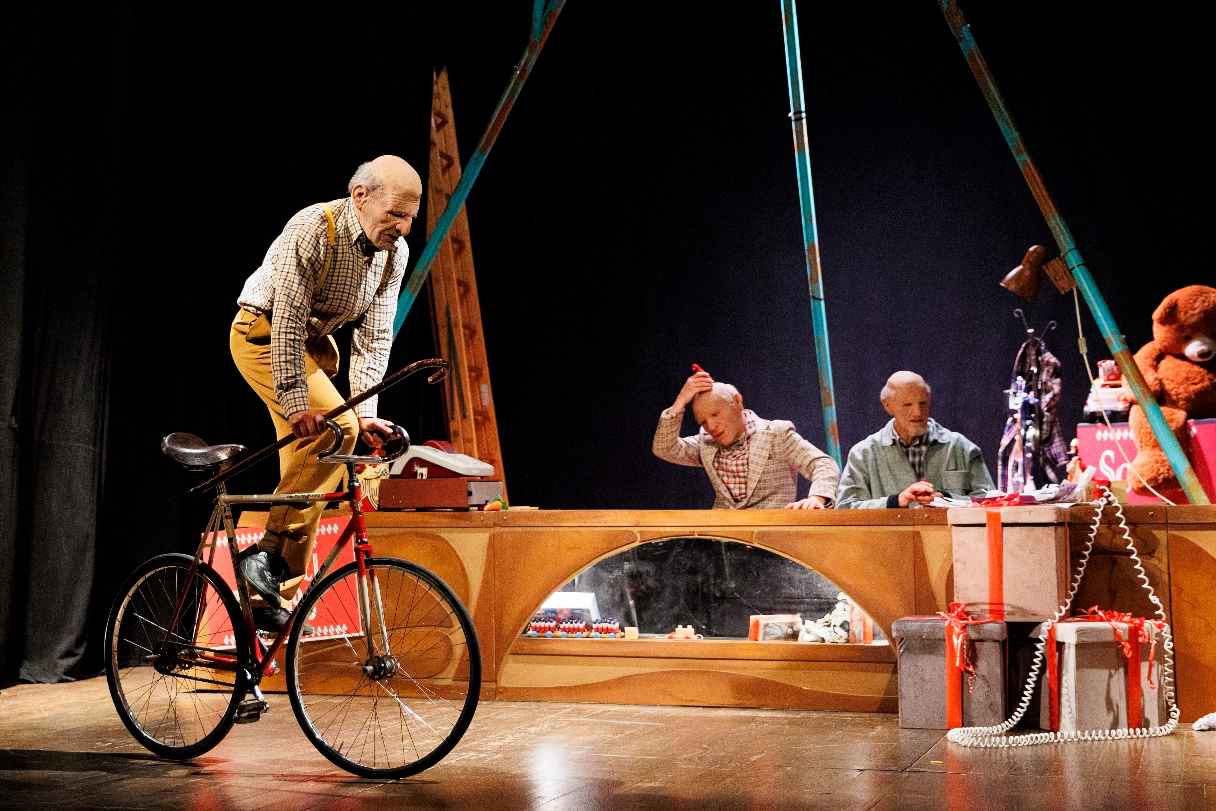 di e con Andrea Brunetto, Max Pederzoli e Alessio Pollutriregia Andrea Fidelioocchio esterno Mario Guminacostumi e scenografie Elettra Del Mistroeffetti magici Luca Mercatellimusiche Paolo Andriololuci e tecnico di scena Andrea Ugoliniproduzione Madame Rebiné , con il sostegno Ministero della cultura e Regione FVG
