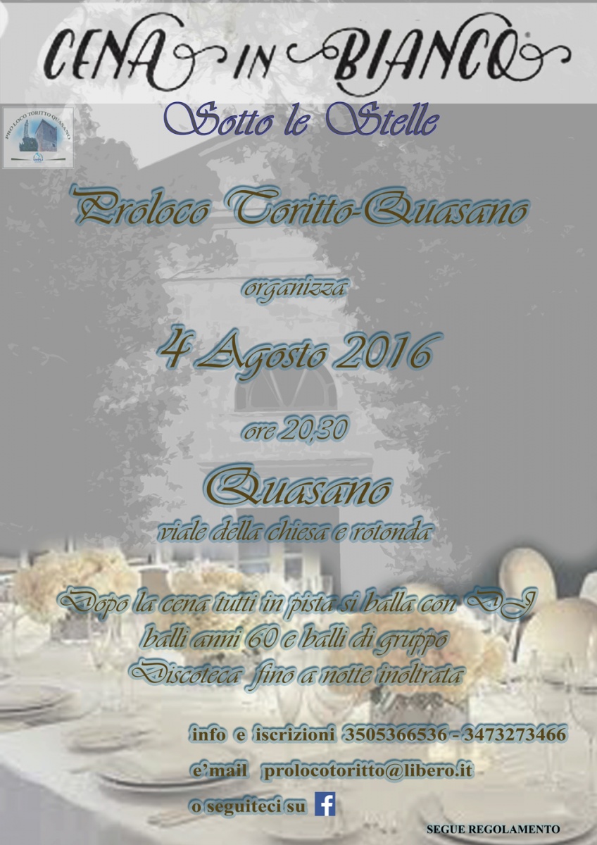 Eventi di oggi a Toritto in formato PDF.