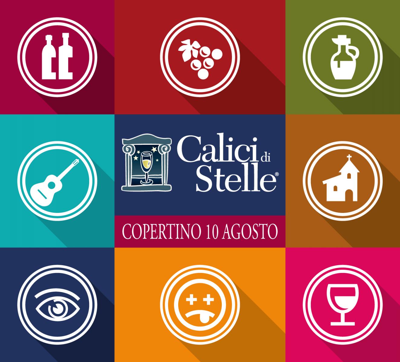 Scintillanti come stelle cadenti, nella notte di San Lorenzo, i calici dei vini pugliesi brilleranno nel centro storico di Copertino con un itinerario che idealmente ripercorrà i territori del vino -Terre del Nero di Troia, Terre del Primitivo, Terre del Negroamaro. Fra uno spettacolo di musica popolare e uno di danza, una degustazione e un gioco sensoriale, vieni a scoprire, con la guida dei sommeliers dell'AIS Puglia, i vini rappresentativi di tutta la produzione regionale, tutti rigorosamente a denominazione d'origine (Doc/Dop | Igt/Igp | Docg) e recanti il marchio di qualità “Prodotto Qualità Puglia”.
