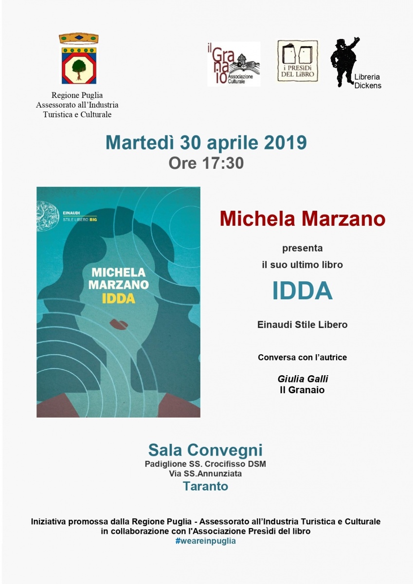 L’incontro, organizzato dal Presidio del libro Il Granaio/ Libreria Dickens, è un’iniziativa promossa dalla Regione Puglia- Assessorato all’Industria Turistica e Culturale in collaborazione con l'Associazione Presìdi del libro.