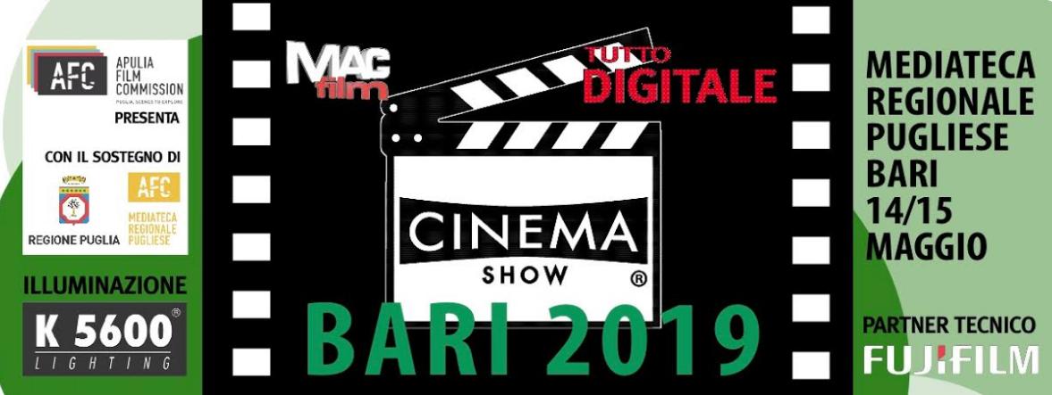 Dopo tre edizioni realizzate a Foggia, martedì 14 e mercoledì 15 alla Mediateca Regionale Pugliese (via Zanardelli, 30, ingresso libero), fa tappa a Bari “Cinema Show”. L’evento, prodotto da Apulia Film Commission e finanziato dalla Regione Puglia ‐ Assessorato Industria Turistica e Culturale nell’ambito del progetto “Mediateca Regionale”, a valere su risorse del Bilancio Ordinario della Regione Puglia, è realizzato da MAC Film e Tutto Digitale con la partnership tecnica di Fujifilm e K5600. Il programma prevede workshop esclusivi con professionisti e tecnici del cinema, proiezioni, incontri con autori e storici, presentazioni ed esposizioni di nuove tecnologie.