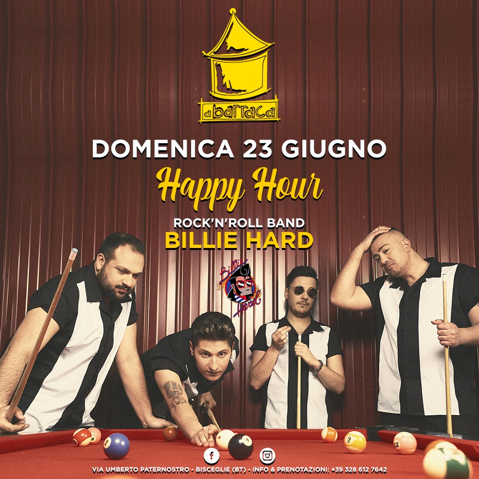 Domenica 23 Giugno Billie Hard in concerto presso A' Barraca a Bisceglie!