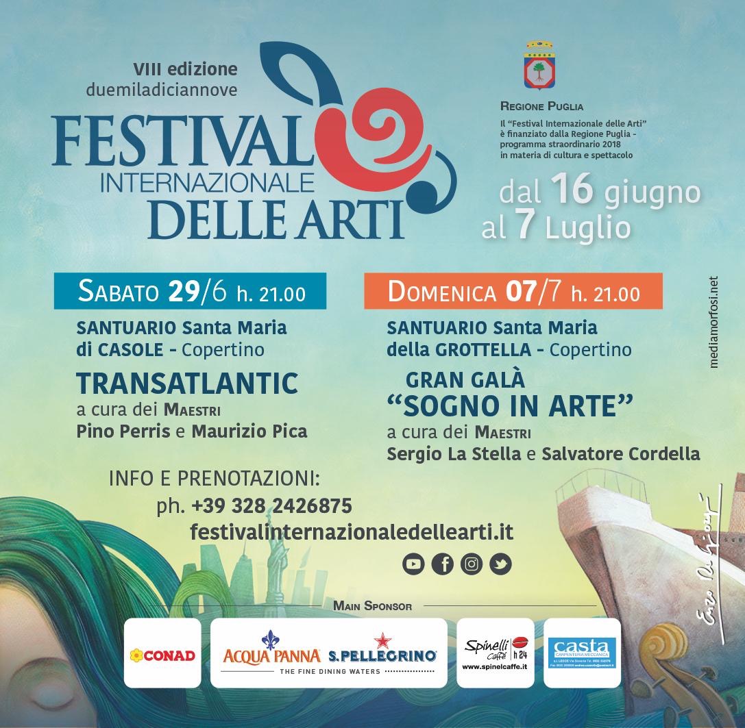Sotto la direzione artistica del Maestro Salvatore Cordella, il Festival Internazionale delle Arti da il via così alla sua ottava edizione, in un’armonia di suoni, passioni ed emozioni. Ideato dall’Associazione International Arts Company, il Festival si propone di presentare al pubblico le iniziative e la programmazione annuale dell’Associazione e di farne apprezzare i frutti dell’intensa attività artistico-culturale. Dal 16 giugno al 7 luglio, il Festival sta sviluppando un percorso attraverso sei unici appuntamenti in diverse location per dare risalto alle tre espressioni più tradizionali dell’arte – la musica, l’arte figurativa e la lirica – accompagnate dalle altre arti – prosa, danza, light design, arte culinaria enogastronomica – con l’obiettivo unico di far riscoprire agli spettatori le meraviglie e la bellezza delle arti.