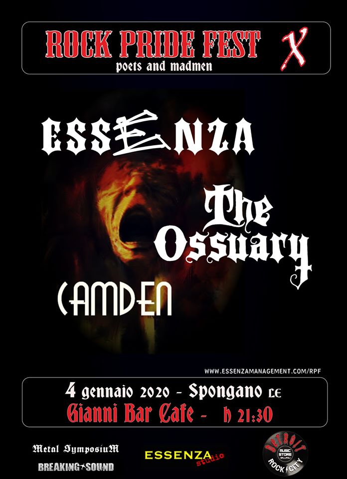 La DECIMA edizione del festival hard rock salentino per eccellenza vedrà in scaletta Essenza, The Ossuary e Camden. il 4 gennaio 2020, presso Giannibar - Cafè - Ingresso gratuito!!!