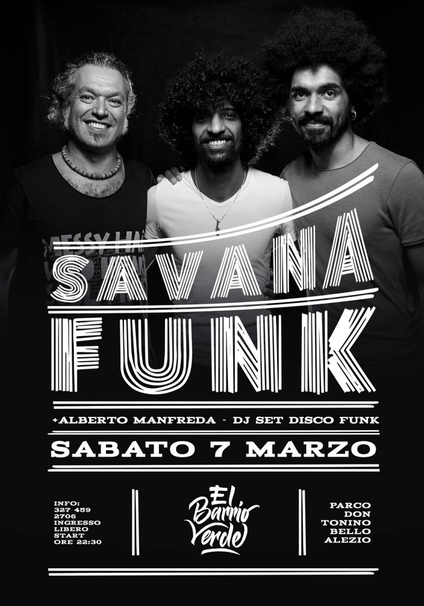 I Savana Funk, reduci da un'estate in tour grazie al Jova Beach Party di Lorenzo Cherubini, sabato 7 marzo porteranno a El Barrio Verde di Alezio la stessa calda energia dell’estate e il loro coinvolgente show!