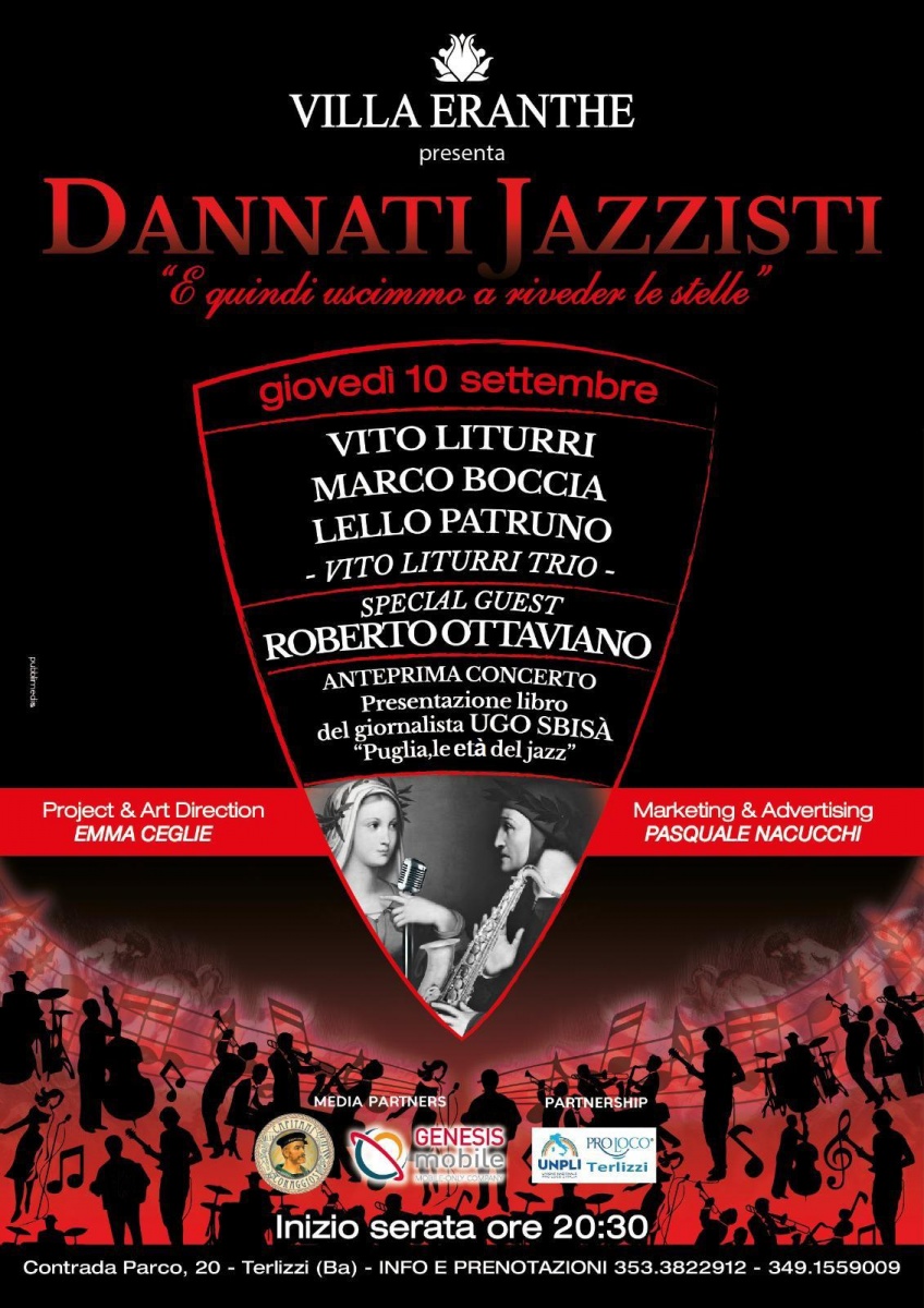 "Dannati Jazzisti" è certamente un festival che si rivolge ai jazzofili ma anche a chi desidera godere di uno spettacolo che sublimi il talento di grandi artisti del jazz in un suggestivo cameo dantesco versione 2.0.
