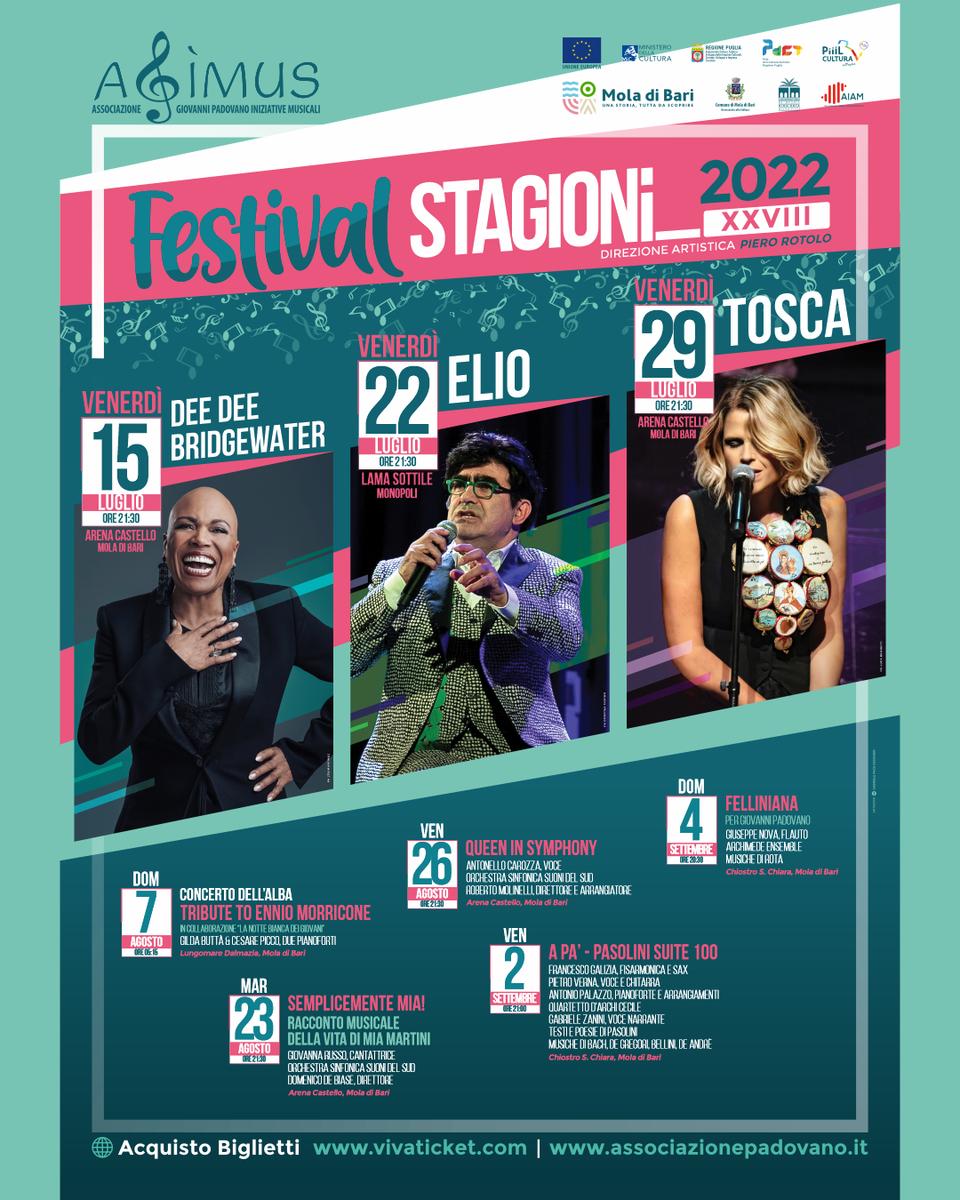 Si torna nell’Arena Castello di Mola il 29 luglio (ore 21.30) per un altro rendez-vous con una delle voci più belle della musica italiana, Tosca, che torna in Puglia per presentare il celebrato spettacolo con la regia di Massimo Venturiello ispirato al disco Morabeza, colorata giostra poliglotta per la quale l’artista nel 2020 ha ottenuto due prestigiose targhe Tenco.
