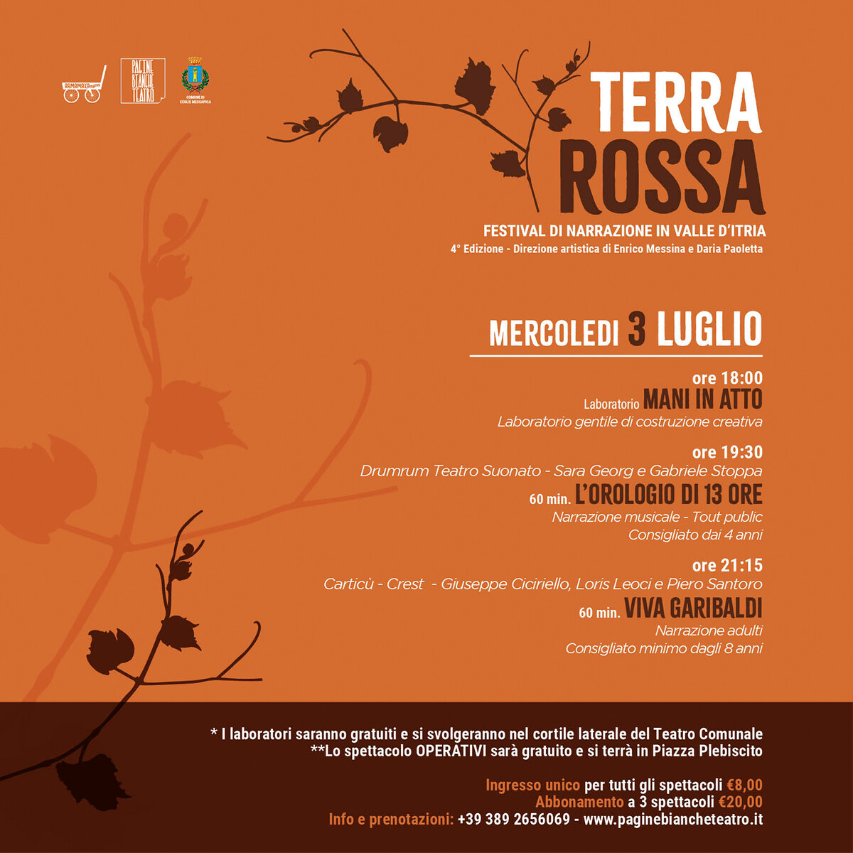 Per 3 giorni - dal 3 al 5 Luglio 2024 – ci ritroveremo, grandi e piccoli, a Ceglie Messapica, Sobb'Asile (alla fontanella di Via Vittorio Alfieri) con la quarta edizione di TERRA ROSSA, il Festival di Narrazione in Valle d’Itria.
