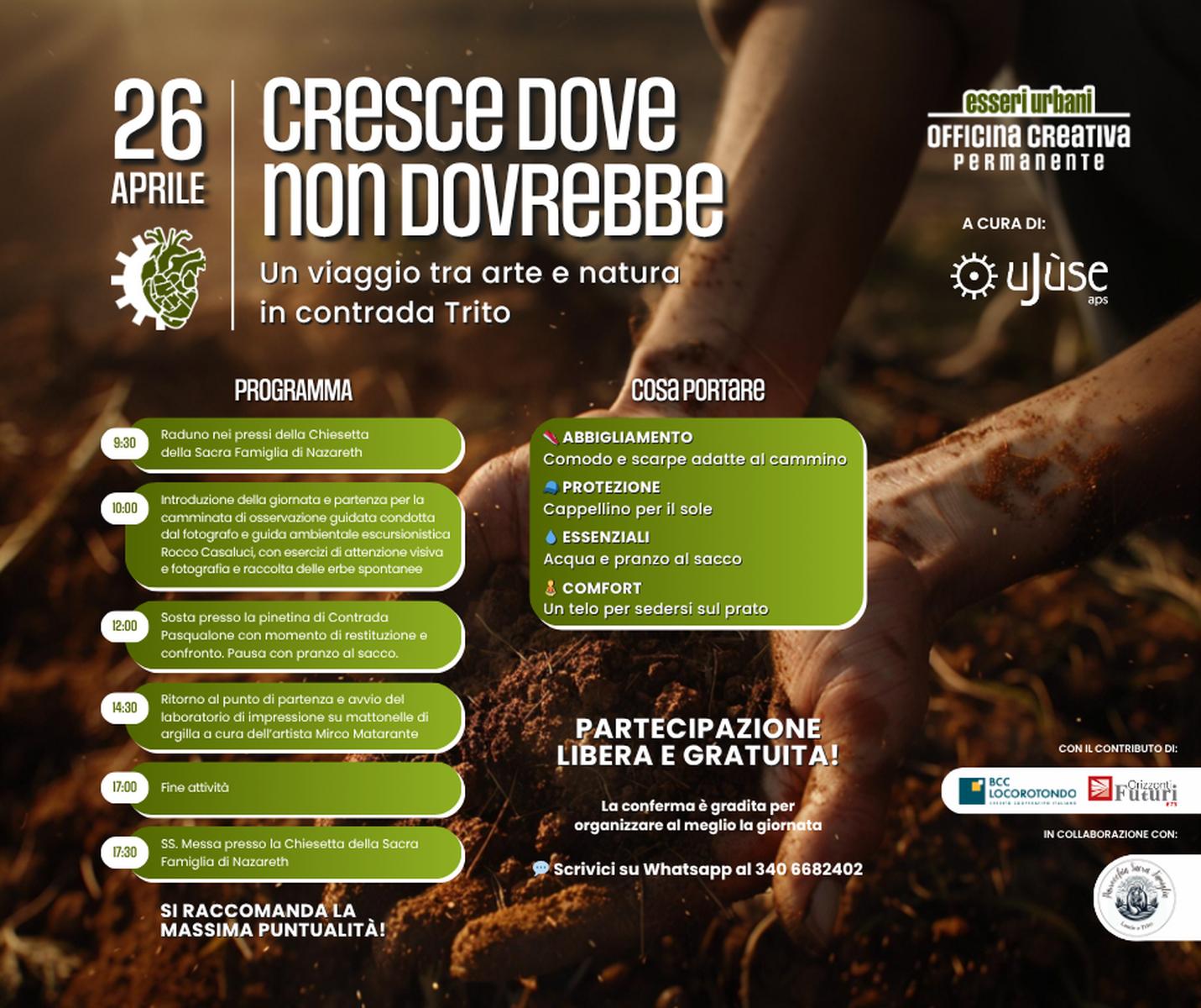 ESSERI URBANI, il progetto culturale promosso da U Jùse APS, con una giornata immersiva tra arte, natura e comunità nella contrada Trito di Locorotondo.